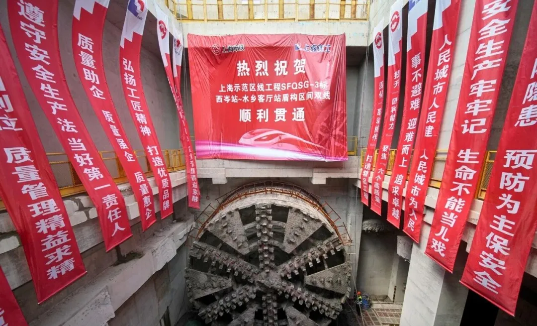 上海示范区线东起虹桥枢纽,西至水乡客厅站,主要沿北青公路、外青松公路、G50沪渝高速通道、G318沪青平公路西侧走行,线路全长约52.4公里,其中地下段长26.4km、高架段长25.7km、路基段长0.3km。全线共设站10座,其中地下站4座(芳乐路站、华青路站、青浦新城站、水乡客厅站),高架站5座(徐乐北路站、赵重公路站、青浦新城南站、朱家角站、西岑站),平均站间距5.841km。全线设青浦动车运用所1座,接轨于动车运用所接轨站,设主变电站2座,1座与动车运用所合设,1座位于华青路站西北侧,全线设计时速160km/h。上海示范区线工程SFQSG-8标施工招标范围:青浦新城南站(不含)~青浦新城站(不含)盾构区间,包括区间范围内的清障工程,站后接口及预埋预留等工程。