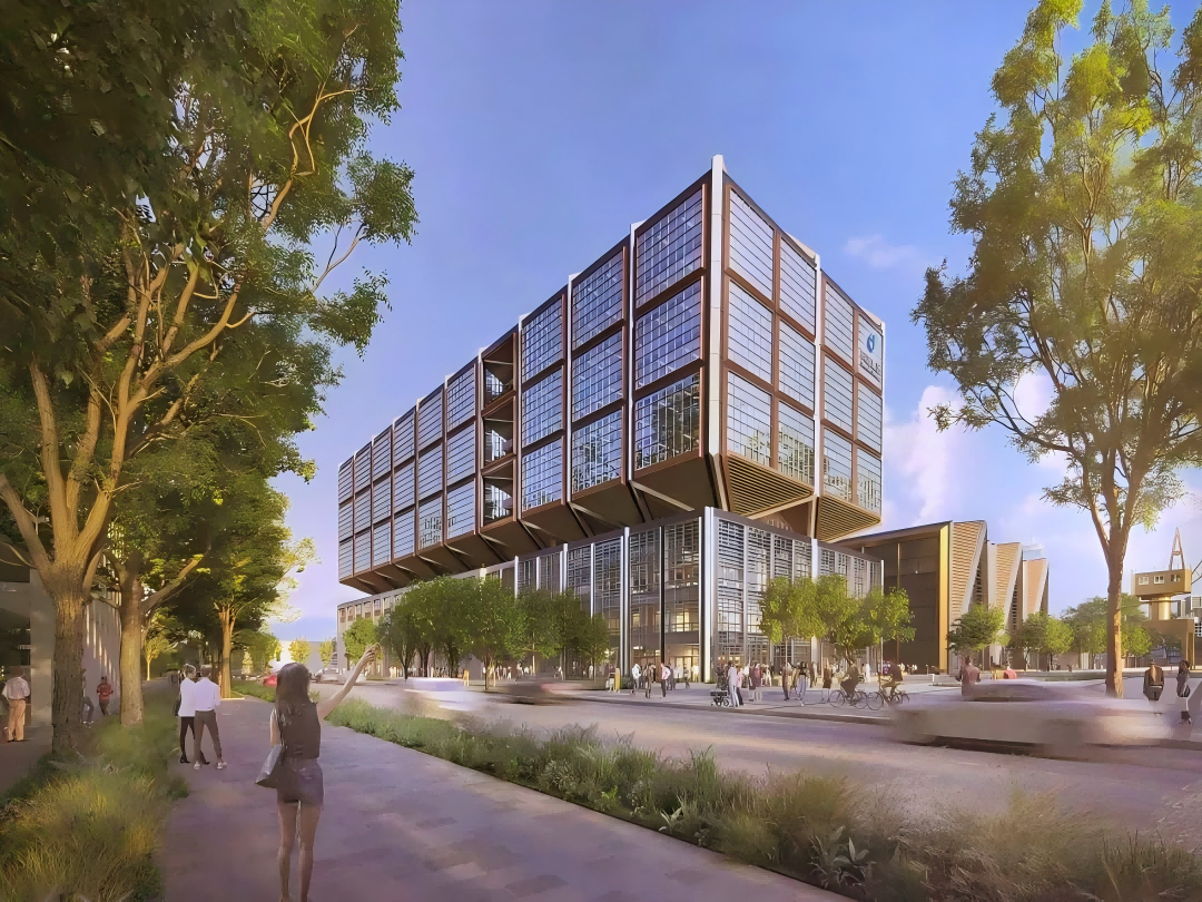 抖音集团上海滨江中心总建筑面积114352平方米,层数11层,高度50米,项目将建设具有全球影响力的互联网在线新经济研发创新中心,打造国际领先的互联网产业示范总部,未来积极发挥龙头企业的带头作用,通过构建生态伙伴机制共同融入全球产业核心供应链。抖音总部项目的设计亮点之一是建筑与周边“社交中心”的紧密连接,形成了一个集工作、休闲、交流于一体的多元化生态系统。翻修后的建筑低层区变成了办公配套设施和商业区,为地面层注入了活力。位于基地南侧的商业区更是激发了滨水景观栈道的活力,形成了丰富多样的滨江生活方式。展演空间则位于场地西南角,与未来计划转型为文化场所的旧船坞相呼应,形成一个新文化体。